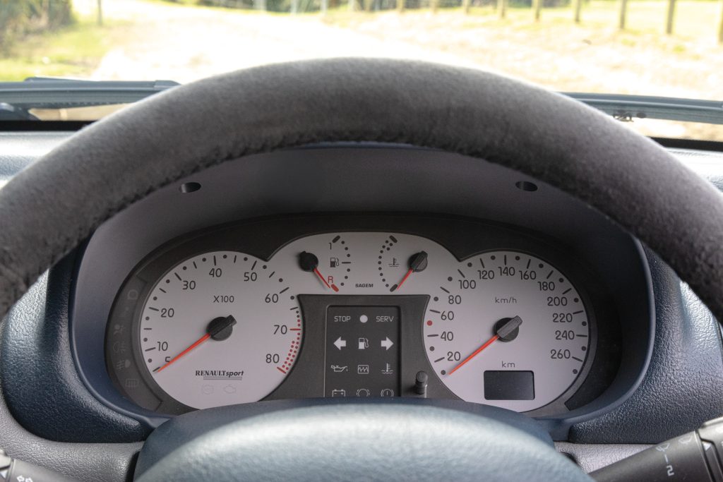 So when the Clio II debuted in 1998, Renault Sport was quick to work its magic on the new super mini. The Clio Renault Sport 172, or Clio R.S for short, followed the usual recipe of adding a bigger engine and a few suspension mods while the styling was given a dusting of upgrades. The Clio R.S would receive the Laguna’s 2.0-litre, 16 valve four. With a better inlet manifold feeding a cylinder head machined by Mechachrome, the maker of Renault F1 engines, the freer flowing four could spin to 7200rpm. Power was rated at 127kW which is 172 PS, hence the name, and delivered at a heady 6250rpm. This was sent to the front wheels via a five-speed manual, the only transmission option.
