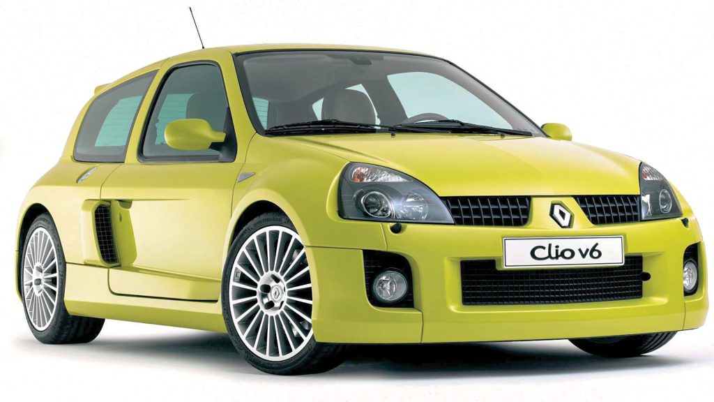 The Clio V6, with its mid-engine layout and bulging wheelarches is one of the most radical hot hatches ever produced. It was born from the Clio V6 Trophy race series which was created to promote the second-generation Clio in Europe. The competition cars, powered by a 3.0-litre V6 producing 285hp, were said to be spectacularly agile.