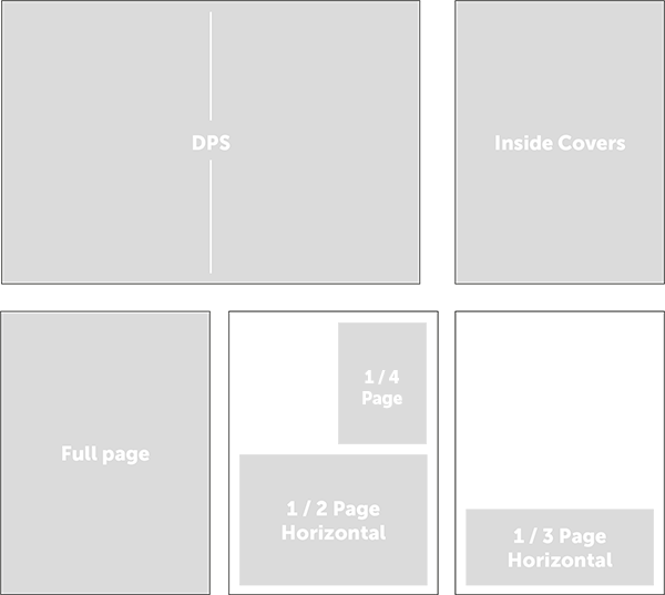 Note: 5mm bleed is required on all edges for all DPS and Full Page adverts. Supply in PDF format with crop marks, all fonts to be embedded and images at 300dpi, colour space must be CMYK. Due to the variable nature of the binding process, we can accept no responsibility for any lack of alignment of type or images that cross the gutter.
